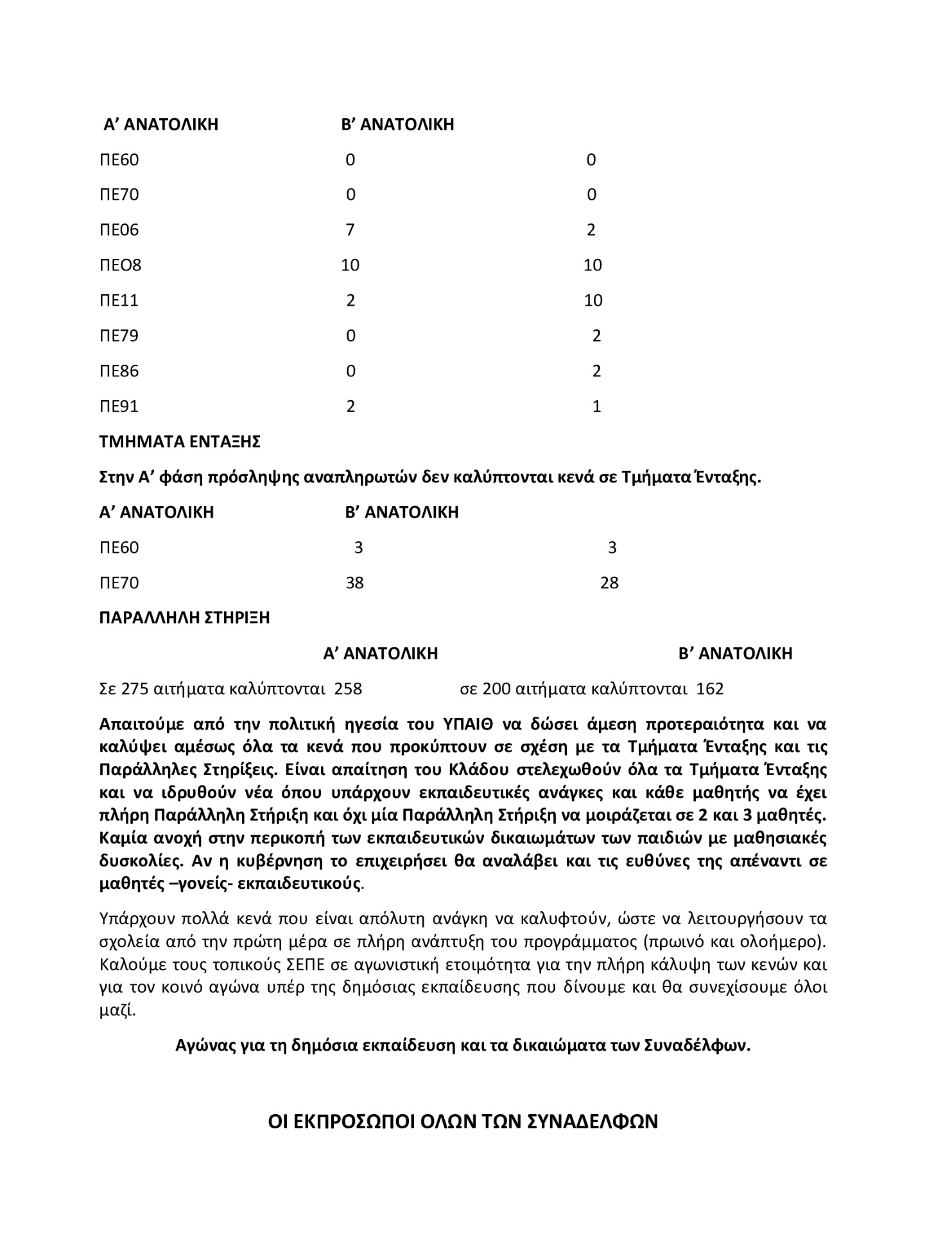 ΠΥΣΠΕ ΑΝΑΤΟΛΙΚΗΣ ΑΤΤΙΚΗΣ ΕΝΑΠΟΜΕΙΝΑΝΤΑ ΚΕΝΑ – ΝΑ ΠΡΑΓΜΑΤΟΠΟΙΗΘΟΥΝ ΤΑ ΑΙΤΗΜΑΤΑ ΓΙΑ ΒΕΛΤΙΩΣΗ ΘΕΣΗΣ